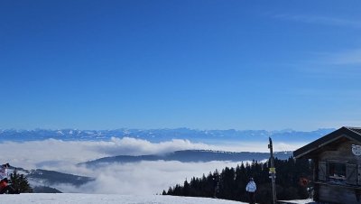 Jeudi a été une journée exclusivement de ski alpin à la station de Métabief avec prise de téléski et télésiège et tout en haut une magnifique vue sur la chaîne des Alpes et du Mont-Blanc.