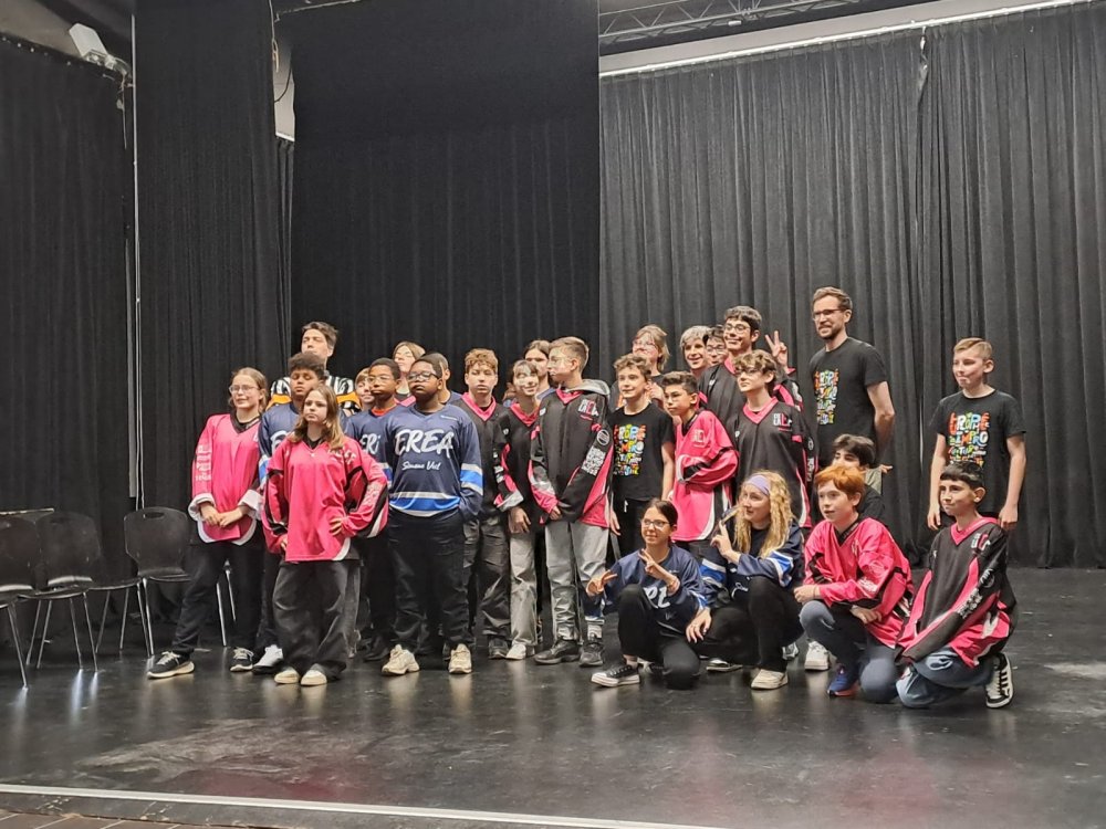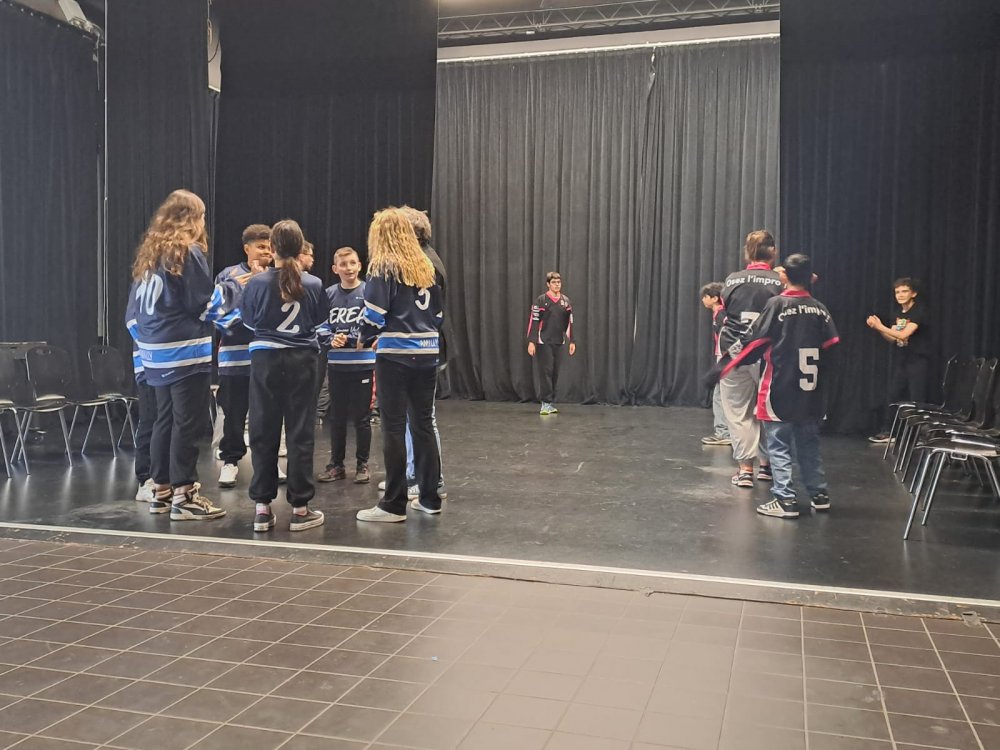 Devant un public d’une soixantaine de collégiens (supporters du collège Rameau), nos élèves ont enfilé leurs nouveaux maillots de match tout juste achetés par le FSE, et se sont lancés avec énergie et créativité sur scène. Encadrés par leurs professeurs, M. Cabarat et Mme Manh, les élèves ont relevé le défi avec beaucoup de sérieux… et surtout, avec beaucoup de plaisir.