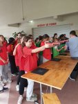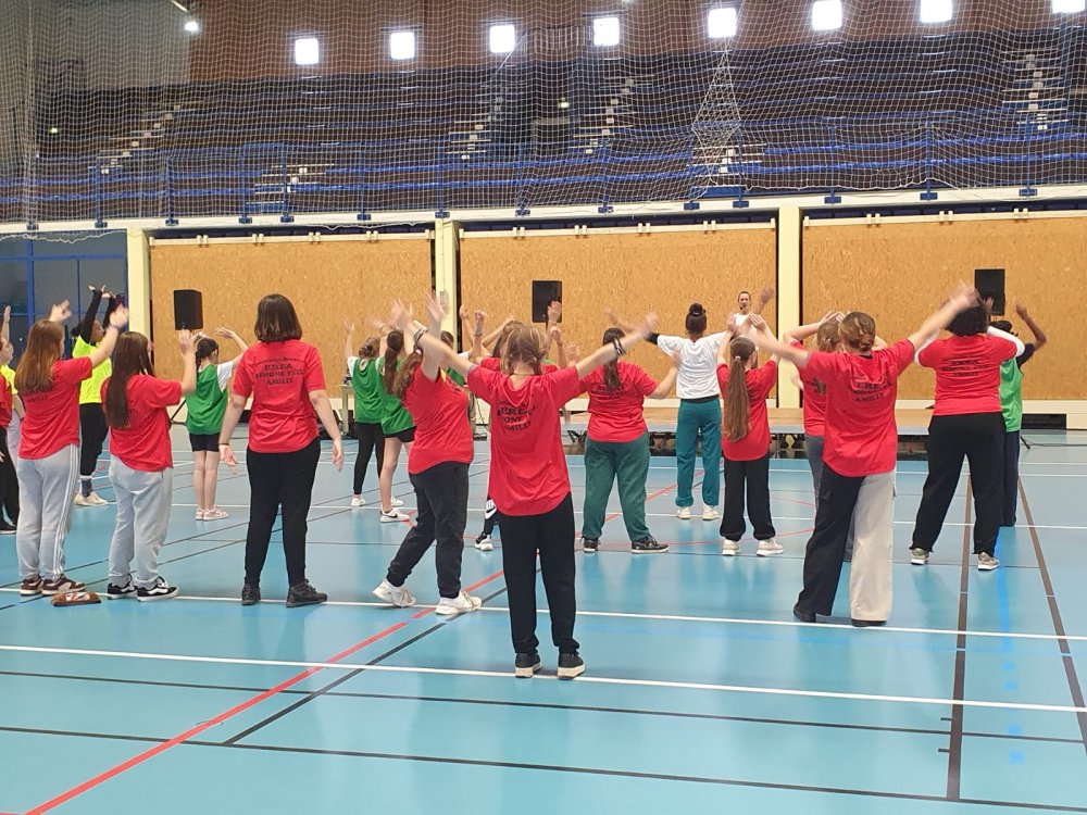 Elles ont poursuivi en participant avec beaucoup d’entrain aux différents ateliers qui leur étaient proposés : tir au pistolet laser, volley-ball, danse, badminton, double dutsh (corde à sauter collective) et musculation !