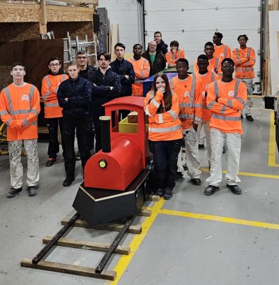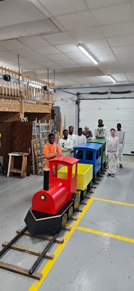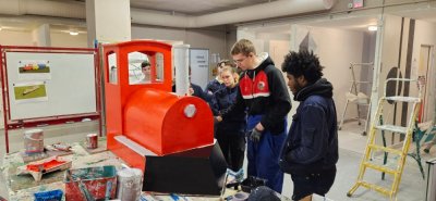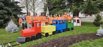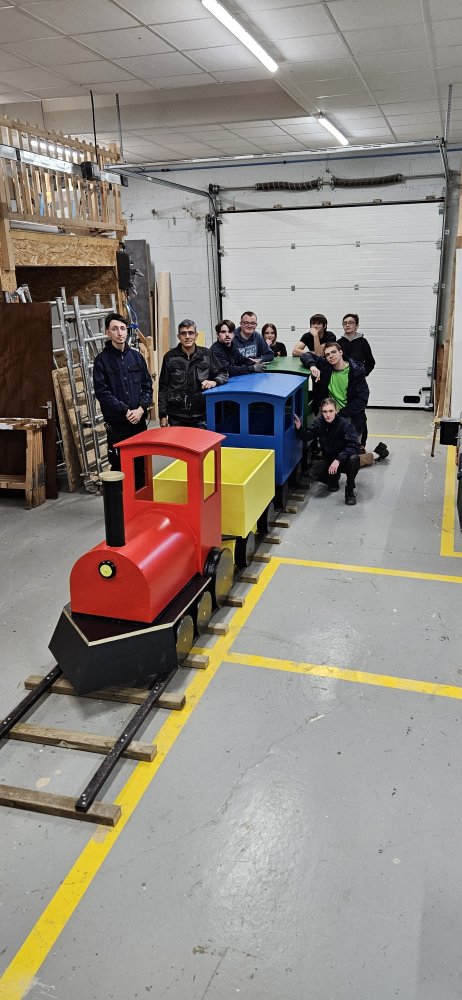 Pour les fêtes de Noel, les élèves de première année de l’EREA en CAP Menuiserie installateur (MI) et en CAP Peintre Applicateur de Revêtements (PAR) , dans le cadre d’un projet école, ont fabriqué un train et une voiture qui ont été installés mercredi 17 décembre pour décorer le rond-point de l’avenue d’Antibes à Amilly au niveau du magasin BUT.