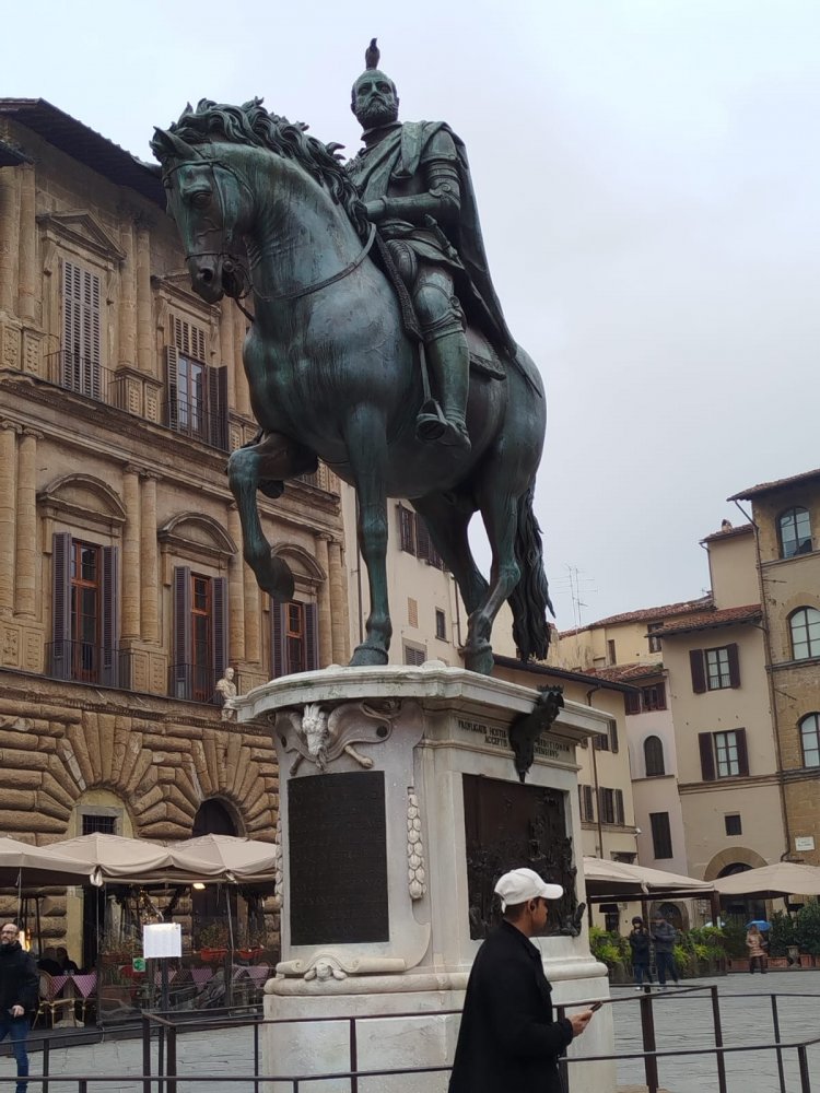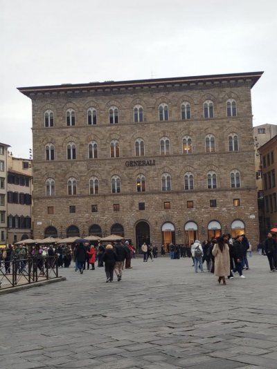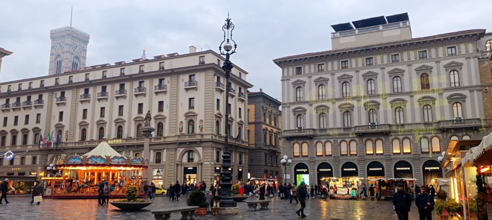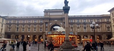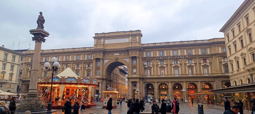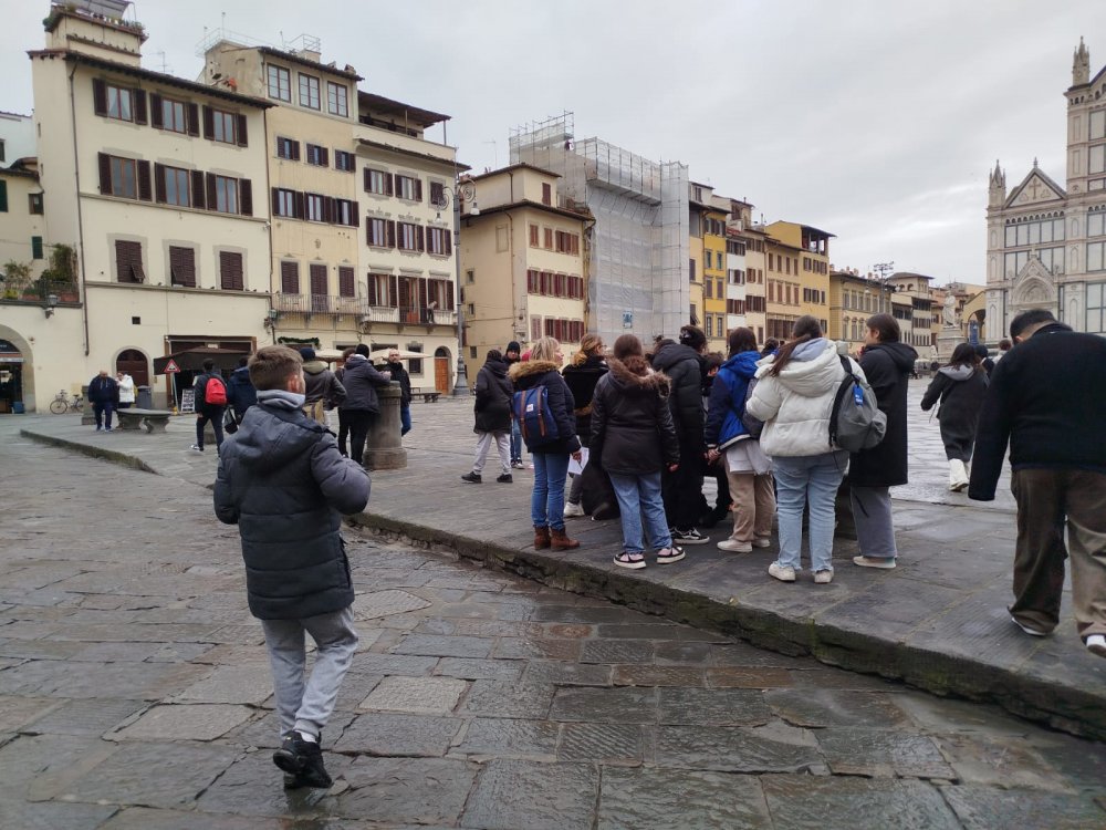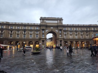 Balade dans les rues de Florence : le quartier et la piazza di Santa Crocé où ils ont admiré de très belles fresques murales et la piazza della Republica.