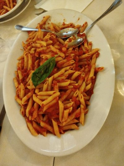 Premier déjeuner italien avec en entrée un gros plat de pâtes !